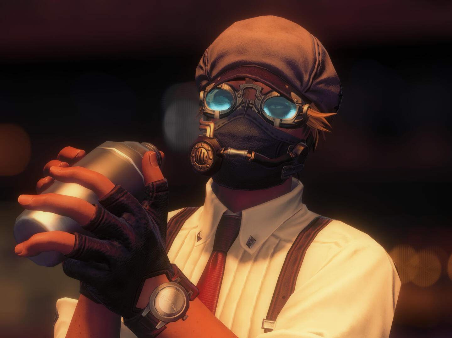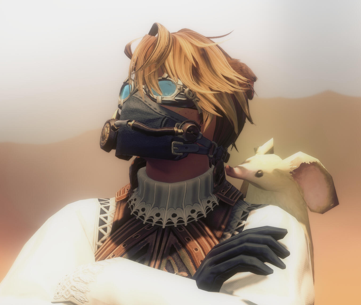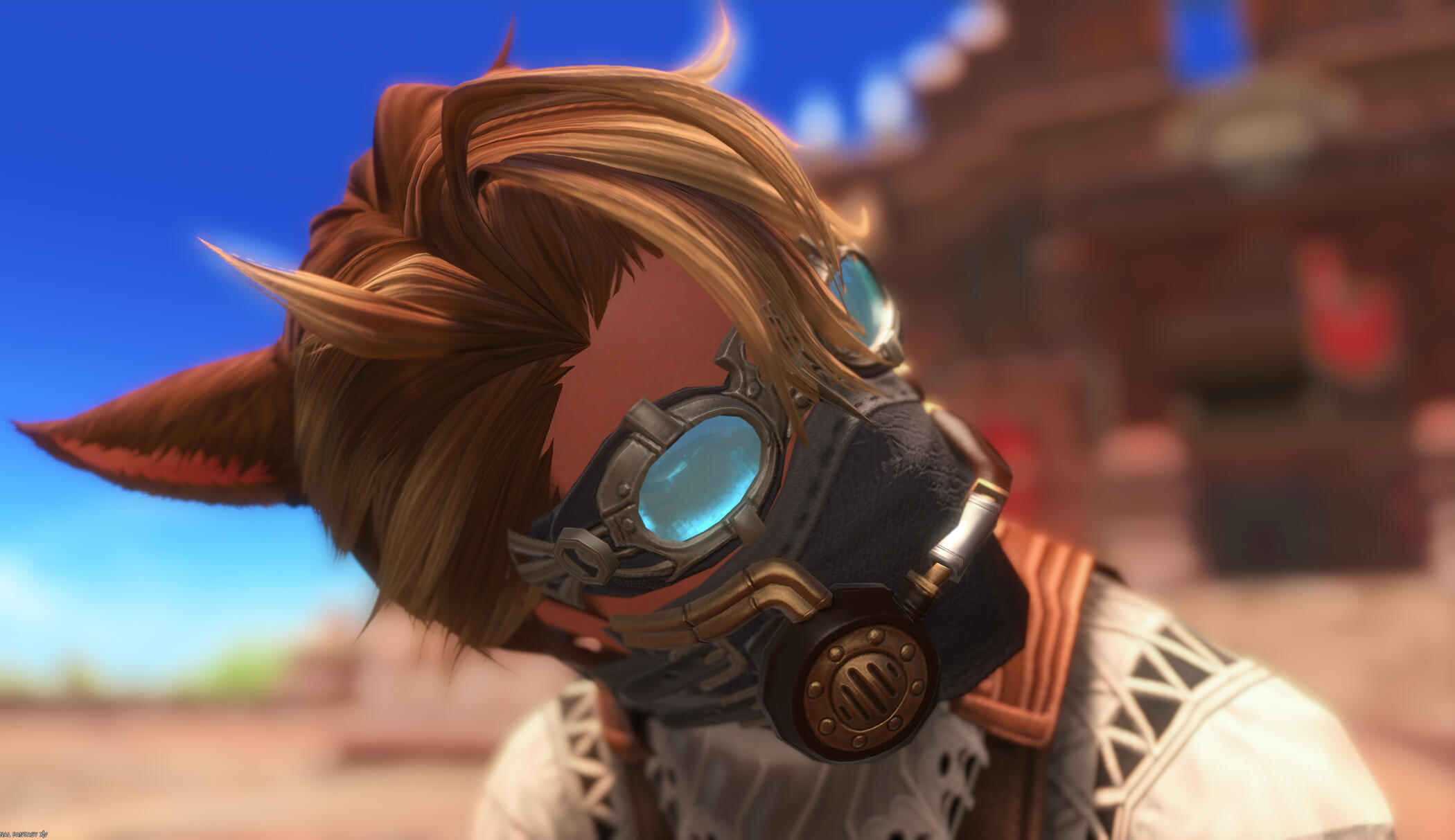 It has been several months since our friend has made landfall on Eorzea.There has been plenty of pitfalls and learning pains, but Ovantis some how landed the eye and companionship of a Gelmorran witch. The peculiar pair bonded over their loose understanding of Common and their shared feeling of being strangers in the land.Together they are learning how to trust and communicate. Things both of them were never taught or have lost to the gears of war.Recently Ovantis has forgo the full face mask and has settled on wearing pince-nezs. Still to shy to fully show his face all at once or his body. But with the support of his new found interest he is learning that he is in control of himself and his own future.